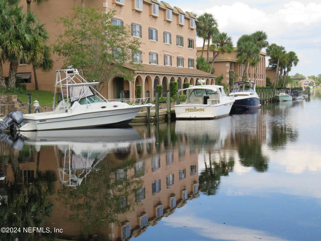 Beautifully renovated condo offers a spacious and functional layout. Primary bedroom is located on main floor while the 2nd bedroom is downstairs with its own private bath-perfect for guests or added privacy.The condo has been updated w/LVP wood flooring, granite counters, updated kitchen, updated baths, plumbing replaced, new lighting,,good sized closets plus a screened lanai that opens to pool/sitting/entertainment/water slips. Enjoy BOATING w/dedicated slip for a 40' boat. The slip is steps from the screened lanai that opens to the pool and entertaining areas overlooking the water basin. Convenient to NAS, I295, I10. This one is a beauty and shows very well w/ a blend of luxury, convenience and waterfront living. Price includes boat slip included. Community has pool, fitness spot, laundry facilities.