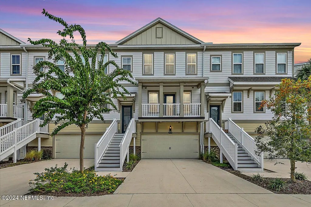 Seller willing to pay 3 points toward rate buy down, meaning a rate potentially as low as 5.5%! See docs! Convenient location, beautiful finishes, pristinely clean, plus outdoor space! Welcome to Tidewater Nocatee: walk to pickleball, waterparks, shopping/dining & more! Step inside & appreciate the natural light pouring in this immaculate home. The diagonal tile flooring is stunning & perfectly complements the wood stair treads. The designer kitchen has enough seating for 6 or more! Love the hand selected gold light fixtures, an ideal match for the cabinet hardware. White quartz countertops & stand alone vent hood make this a showstopper! The main living area also features 2 outdoor spaces: one front, & a spacious back covered lanai with preserve view! Downstairs, find a full bedroom, bath & garage with epoxy plus several closets & a 3rd covered lanai! Upstairs, discover a primary suite with a tray ceiling & 3rd bedroom/bath, spacious enough for 2 queen beds. Ready for you to move in!