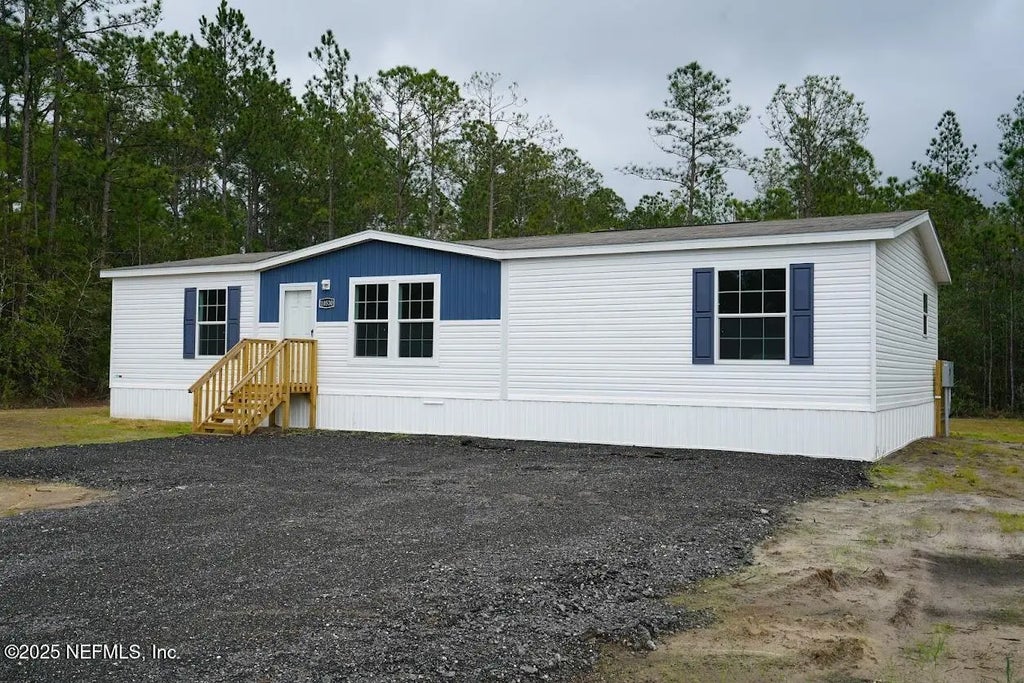 Brand new MFH in popular Flagler Estates. This home is all sheetrocked inside with accent wall. Has upgraded kitchen appliances & vinyl flooring through out. The master suite has double vanities & a big shower with seats. The GR is very open & the kitchen has tons of cabinet & counter space with an island & formal DR. Lot is acre plus with a nice big asphalt drive & parking area. This new home is all ready to move in so take a look today.