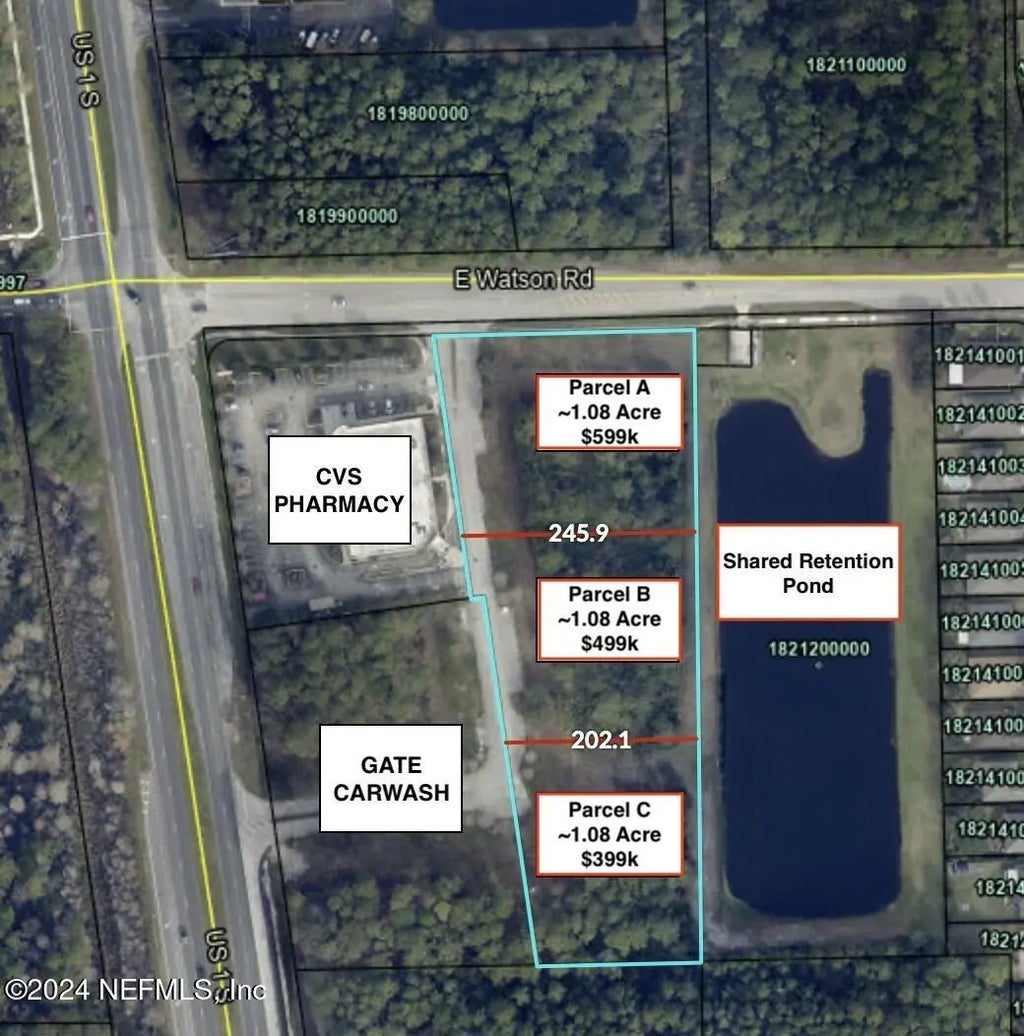 Out of the original three 1-acre parcels, only one remains - the middle lot - and it's ready for immediate development! This shovel-ready 1.05-acre parcel is fully usable and zoned Mixed-Use. Strategically located in the rapidly growing and underserved South St. Augustine area, this property is positioned at a signalized intersection on US-1, featuring a northbound turn lane for easy access. It sits adjacent to a CVS and newly built GATE Car Wash.