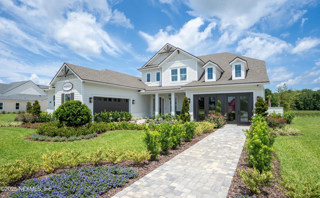 Rare opportunity to own a semi-custom MODEL HOME by award-winning builder, MasterCraft Builder Group, in the gated Courtney Oaks neighborhood of John's Island at Silverleaf. No detail is left untouched, from the 2 story vaulted ceiling foyer, to the tabby stone surround fireplace, and detailed trim work throughout. This home features 5 bedrooms, 4.5 baths, formal dining room, pocket office, and a large bonus room. Hardwood floors line the main living spaces, as well as the Owner's Suite. The kitchen features Shiloh double-stacked soft-close maple and black cabinets, 36'' 6-burner chef's range, built in espresso maker and convection microwave, as well as a 4-door refrigerator. Melt away the stress of your day in the primary bathroom's freestanding soaker tub, or the oversized shower. Relax on a summer day on the huge covered lanai, floating in the pool, or taking a dip in the hot tub while overlooking the pond to preserve view. Too many upgrades to list!