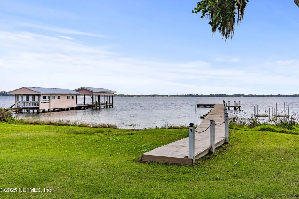 Custom built, two owner home was originally built by a restaurant owner and ready for ultimate entertaining on coveted Kingsley Lake! Over 7000 SF under roof with lake views, large windows and French doors from all bedrooms, living & dining rooms provide for gorgeous sun rises. Commercial grade gas oven, griddle & burners. Granite countertops, gas cook top @ food prep and cooking island (sink) in kitchen and a large bar with wet sink in the living room. Primary suite upstairs is spacious and has deluxe bath with built ins plus secondary washer/dryer connections. Main laundry room is down stairs and houses a washer/dryer and utility sink. Central vacuum system, 2 gas water heaters, living spaces on all three levels. Ground level has ceramic tile patio and there is a second level deck for relaxing and entertaining! Recently updated light fixtures, ceiling fans, toilets, hard wired smoke detectors, LED lighting, tankless water heater, exterior paint/stain and garbage disposal. Updated dock has new jet ski lifts, led lights, steps and ropes.