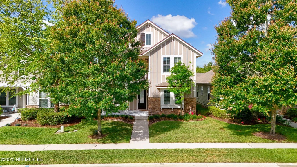 Step into style and comfort in this beautifully maintained two-story home located in the highly sought-after Twenty Mile Village neighborhood of Nocatee, one of the nation's top-selling communities. Featuring 3 spacious bedrooms, 2.5 bathrooms, and an open loft area, this home offers the perfect layout for modern living and entertaining. From the inviting front porch to the airy, open-concept main living space, you'll immediately feel at home. The kitchen boasts stainless steel appliances, granite countertops, and a large island perfect for family gatherings or casual breakfasts. Upstairs, a versatile loft space provides endless options—ideal for a home office, playroom, or media lounge with a private upper deck creating a place to relax and enjoy the fresh air! The primary suite is a true retreat with a walk-in closet and spa-inspired en-suite bath as well as wo additional bedrooms share a full bath, and a convenient half-bath is located on the first floor for guests.