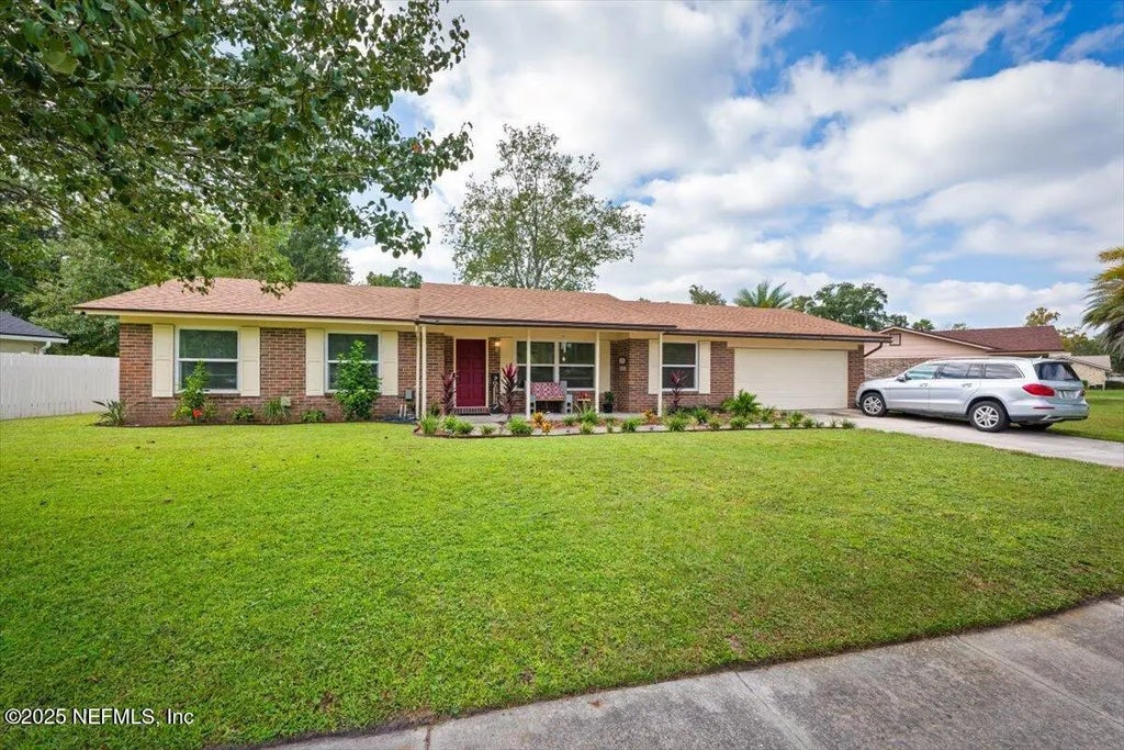 This beautiful 3-bedroom, 2-bathroom brick home is a true gem! Step inside and you'll immediately notice the beautiful, durable LVP flooring that extends throughout, offering a modern look and easy maintenance. The spacious living area is highlighted by a classic brick fireplace, perfect for cozy evenings. Preferred Lender is offering up to $20,000 to qualified first-time home buyers. But the appeal doesn't stop there. Head outside to discover a big backyard, ideal for entertaining, gardening, or just letting kids and pets play. And for your privacy and peace of mind, it's enclosed by a brand new wooden fence. This home perfectly blends classic charm with modern updates, making it a must-see! A GREAT BUY! Located near great shopping areas, such as the Oakleaf Town Centers, and close to NAS Jax with easy access to I-295.