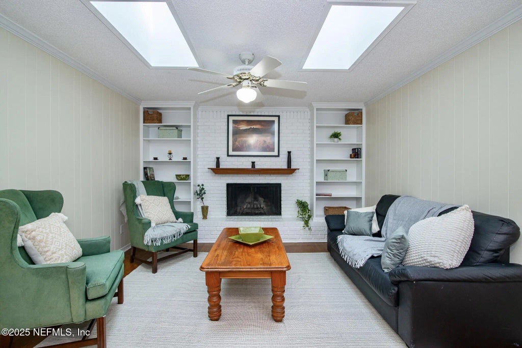PRICE IMPROVEMENT - NOW $10K LESS! Rare 6-bedroom, 3-bath home with private 2-bedroom, 1-bath guest suite and separate entrance in The Woods, one of Jacksonville's most desirable gated communities. Perfect for multigenerational living, military relocation, or large families, this move-in ready home offers flexible space, abundant storage, and an extra-spacious side driveway with plenty of parking for multiple cars. Freshly painted inside, this home features no carpet, remodeled bathrooms, brand-new kitchen appliances, hardwood and laminate floors, and custom built-in bookshelves. The spacious owner's suite has a walk-in closet, and every bedroom provides generous storage. Natural light fills the home through skylights and French doors, while a brick wood-burning fireplace adds cozy charm. Step outside to a large screened-in porch, fully fenced backyard, and room to add your dream pool, surrounded by mature shade trees. Living in The Woods means resort-style amenitiescommunity pool, tennis, pickleball, basketball, trails, lakes, and playgrounds. Only 10 minutes to Jacksonville Beach and a short commute to Mayport Naval Station, NAS Jacksonville, and main highways. * Seller's preferred lender offers 1% of loan amount toward closing costs or rate buy-down with Edward Carlton, Bayway Mortgage Group. This home truly checks all the boxesspace, flexibility, storage, parking, and location. Schedule your showing today!