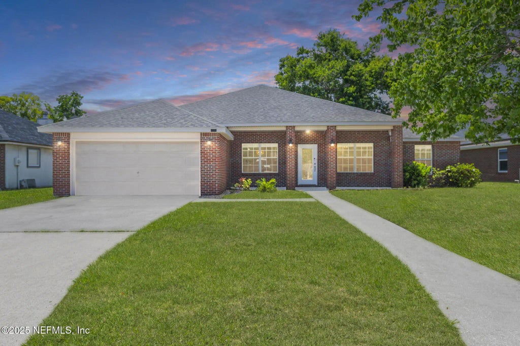 Magnificently Immaculate Recently Renovated One-Level Front-Faced Bricked Home! Ideally situated in the quiet community of Highland Grove in Clay County, just moments from Moody Avenue Park, this 3/2/2, 2,087 sqft residence offers a leisurely lifestyle of comfort, style, and convenience. This spacious split-floor plan home, which boasts a classically timeless aesthetic, welcomes with its traditional red brick façade, verdant lawn, inviting covered front porch, and serene screened-in lanai. Overflowing with soft natural light, the pristine interior showcases a beveled glass front door, high ceilings, fresh neutral paint, stylish arched entryways, and updated modern faux wood flooring throughout. The refined formal dining and living rooms each come adorned with elegant chandeliers, while the spacious family room centers around a charming brick fireplace. Designed for both functionality and style, the fully equipped, semi-open concept kitchen exudes modern elegance with updated cabinetry, stainless steel appliances, and an inviting breakfast nook perfect for casual dining. Secluded for ultimate privacy, the expansive primary bedroom embodies contemporary luxury with direct access to the screened-in lanai, an oversized walk-in closet, and a lavish spa-inspired en-suite bath, which includes dual vanities and a sleek glass-enclosed step-in shower. On the opposite side of the home, two additional bedrooms with generous closets, one of which also provides direct access to the lanai, share a full hallway bathroom with a shower/tub combo and a spacious vanity for ample storage. Sliding glass doors open to a tranquil screened-in lanai that overlooks the private, fenced backyarderfect for relaxing or entertaining. Conveniently located close to NAS JAX, shopping, restaurants, top-rated schools, medical facilities, entertainment, and more! Schedule your private showing today!