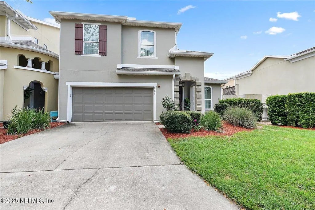 Located in the gated community of Sumerlin at Bartram you'll find this beautiful European-Style 3-bedroom, 2½ bath home with an amazing courtyard. This home is a MUST SEE! You'll enjoy entertaining or relaxing and spending quality time in this beautiful outdoor oasis. The first floor includes a formal living/flex room, family room and formal dining room complete with an oversized wet bar with additional cabinetry for extra storage. The spacious kitchen features SS appliances, granite counters, decorative tile backsplash and a large center island. Perfect touches for all your entertainment needs. In addition, you'll appreciate the beautiful architectural details including arches, niches, plant shelves, and crown molding throughout the home. A nice size laundry room and ½ bath with pedestal sink finish off the main floor. Upstairs you'll find the lovely primary suite with additional room for a sitting area. The primary bath is complete with soaking tub, separate shower and generous walk-in closet. Additionally, there are two other large bedrooms, a full secondary bathroom, and a loft area perfect for an office or a playroom are located on the second floor. Enjoy Resort Style Club Amenities: Clubhouse, Pool, Fitness Center, and Walking & Jogging Path. Conveniently Located to I-95, Publix at the Shoppes of Bartram Park, Baptist South and moments away from dining, shopping and the convenient lifestyle offered at the Durbin Town Center.
