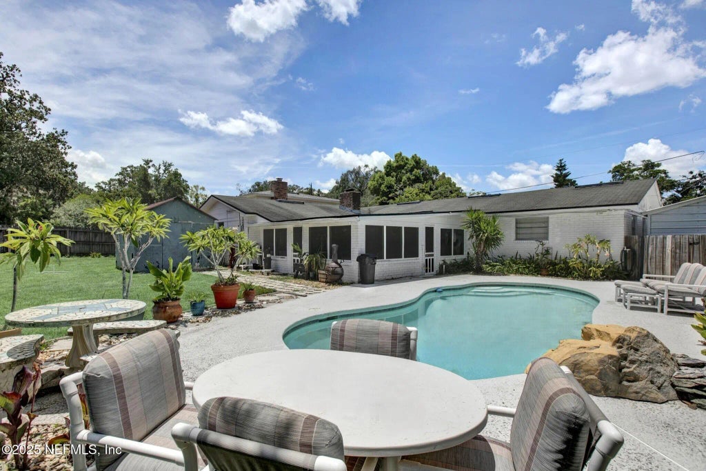 Experience the best of outdoor living with this beautiful 4 bedroom, 2 bathroom pool home located in the well-established neighborhood of Lakeside Estates. This home features very spacious bedrooms, large family room with fireplace, separate dining area and updated kitchen with granite counters and smart appliances. Step outside to an oversized screened patio leading to an inground sparking swimming pool with fountain. Parking includes a 1 car carport and a two car tandem garage. Buyer to verify square footage. Living area square footage includes approx. 528 sq ft unpermitted enclosed garage/storage room that is heated and cooled.