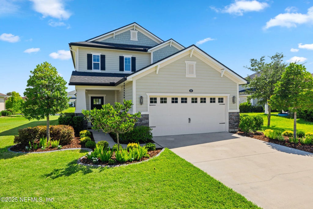 Welcome to 111 Beam Ln, where style, space, and serenity come together in one of St. Augustine's most desirable communities—Beacon Lake. This beautifully upgraded 4-bedroom, 2.5-bath home spans 2,053 square feet and sits on an oversized lot with peaceful pond views in both the front and back. Inside, you'll find thoughtful designer touches throughout, including stacked kitchen cabinets, classic subway tile backsplash, and a custom pantry perfect for staying organized in style. The open-concept living space flows effortlessly into the screened lanai, which features a motorized screen for year-round comfort and indoor-outdoor living. The primary bedroom is located on the ground floor and benefits from a custom walk-in closet. Upstairs there are 3 spacious bedrooms as well as a bonus loft space, perfect for a secondary living space, office or playroom. Located in Beacon Lake, known for its resort-style amenities, family-friendly atmosphere, and A-rated schools—this home has it all!
