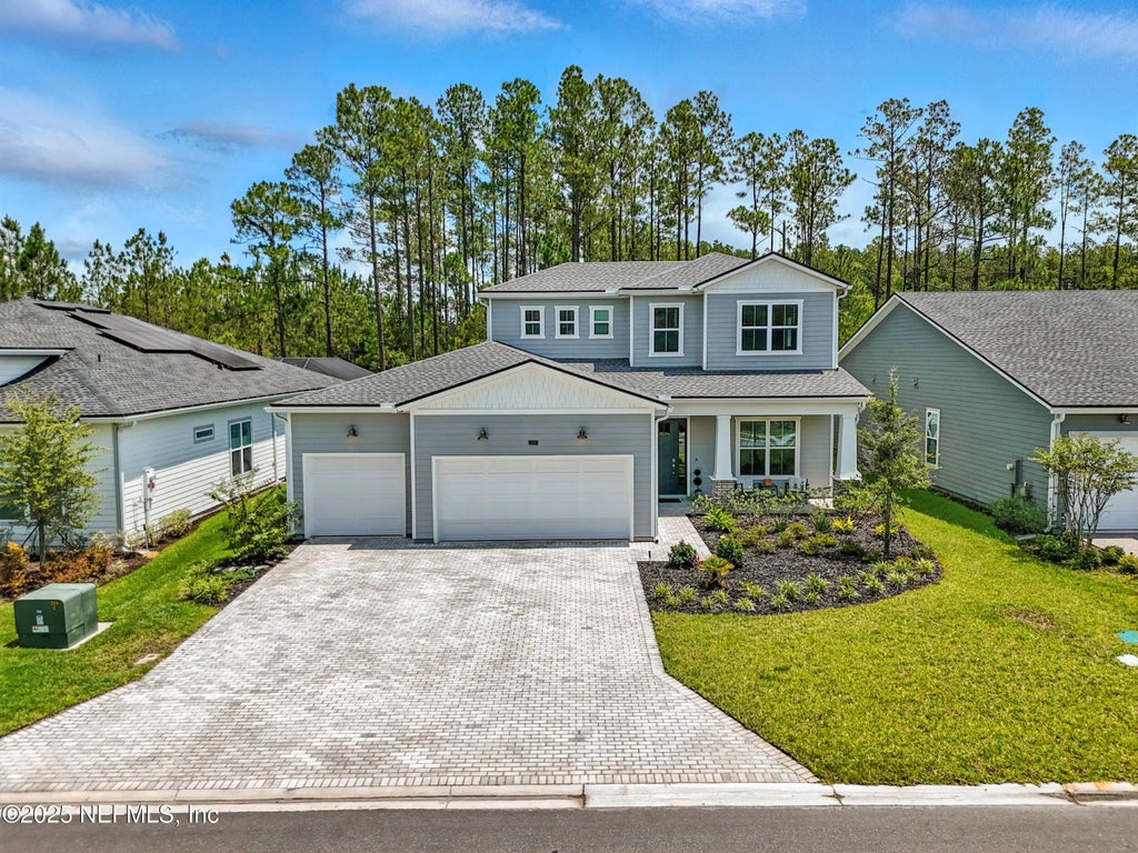 Built in 2022 and better than new, this beautiful home offers the perfect blend of modern luxury and thoughtful design in one of St. Johns County's most desirable gated communities—with no CDD fees and zoned to top-rated ''A'' schools. Featuring 4 bedrooms and 3.5 baths, the home includes a spacious first-floor primary suite with his and hers walk-in closets, a large en-suite bath with double vanities, a garden tub, and a walk-in shower. An additional first-floor mini primary provides ideal flexibility for guests or multigenerational living. The open-concept layout is anchored by a stunning oversized island with quartz countertops, a custom backsplash, and stainless steel appliances including a 6-burner gas cooktop. Rich wood-style flooring flows throughout the main living areas, complemented by a custom dry bar, oversized pantry with under-stair storage, and a dedicated first-floor office or flex space. Upstairs, you'll find... additional bedrooms and a loft, perfect for a secondary living area, playroom, or study space. Enjoy peaceful preserve views from the private, fully fenced backyard featuring a screened and extended lanai with a relaxing hot tub. Located in a natural gas community, this home also includes access to resort-style amenities such as a gated entrance, clubhouse with community pool and patio, fitness center, pickleball courts, and a playground. Ideally situated between Jacksonville and historic St. Augustine, with nearby beaches, shopping, dining, and top-rated St. Johns County schools, this move-in ready home offers exceptional quality, comfort, and convenience in one of Northeast Florida's most sought-after locations.