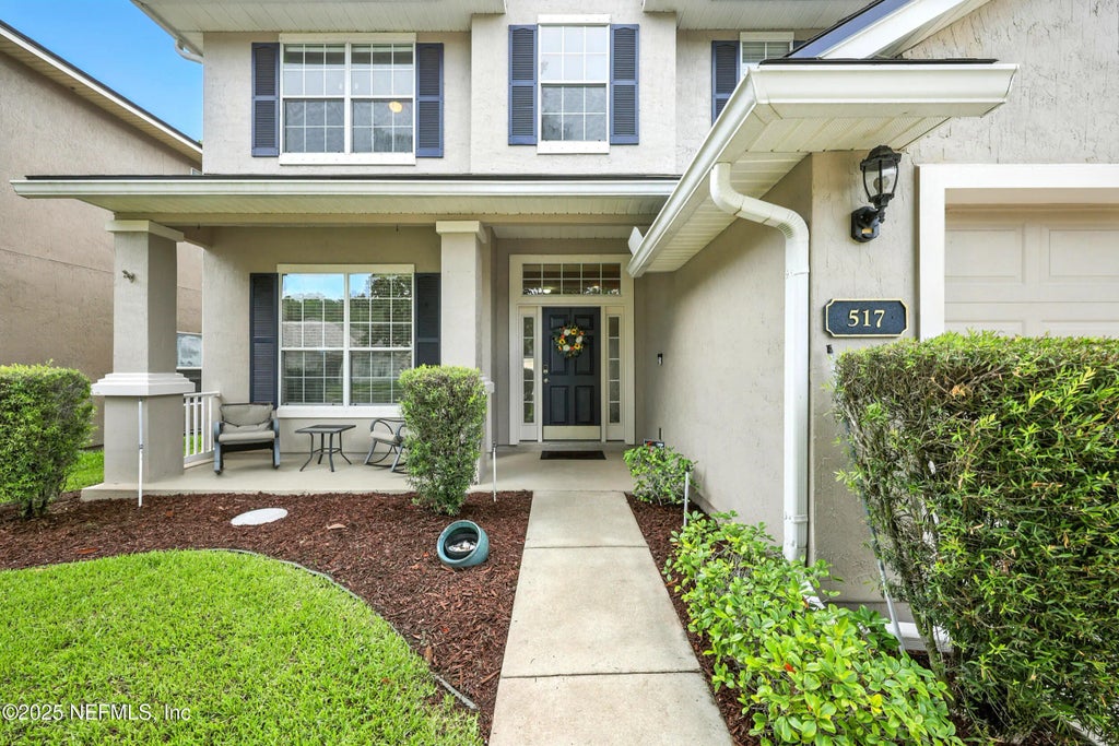 Meticulously maintained and thoughtfully upgraded, 517 Roserush Lane sits on a quiet double cul-de-sac, offering minimal traffic within the Waterleaf community. This beautiful home, featuring four spacious bedrooms and 2.5 baths, is an ideal oasis for growing families and first-time homebuyers alike. Designed for effortless living and entertaining, the home features a spacious open layout anchored by a sleek kitchen outfitted with 5-year-old stainless steel appliances. A dedicated first-floor office meets today's work-from-home needs, while an upstairs loft offers versatile flex space for media, fitness, or play. Recent capital improvements ensure peace of mind: roof (May 2025), water heater (May 2025), plush carpet throughout (Jun 2025), dual HVAC systems (2020), and exterior paint (Nov 2023). All 4 bedrooms, including an oversized primary suite and under stair space, provide generous storage and comfort. Outdoor living is equally appealing. A fully fenced yard backs to preserved woods, and the screened patio invites year-round relaxation with no rear neighbors. Waterleaf residents benefit from sought-after Kernan area convenience plus resort-style community amenities, which feature a pool, updated playground, splash park, and more all minutes to Atlantic Blvd, shopping, and the beaches!