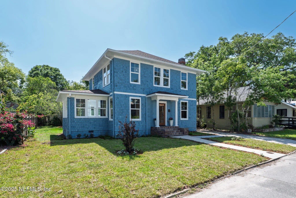 This beautifully restored and redesigned home in downtown St. Augustine combines historic charm with modern amenities, ideally located within walking distance of local landmarks. The property boasts four spacious bedrooms and three and a half bathrooms. The primary suite includes a luxurious walk-in shower and scenic views of Maria Sanchez Lake. As you enter, you're greeted by an inviting atmosphere and an open floor plan that maximizes natural light. Large windows in every room offer delightful views, while a cozy brick fireplace in the living room adds warmth. The dining area features a stunning chandelier, and French doors lead to a private library or sitting room, perfect for relaxation. The Florida Room is an entertainer's dream, overlooking the backyard deck and lush gardens. THIS BEAUTIFUL HOME HAS NEVER FLOODED. The state-of-the-art kitchen impresses with built-in cabinetry, upper lighting, a farmhouse sink, and expansive quartz countertops, ideal for buffet-style serving. Enjoy your morning coffee at the custom built-in window seat. For added convenience, there is a main floor bedroom and bathroom suite suited for elderly guests, along with a powder room for visitors. This home seamlessly combines privacy, space, and comfort, making it a perfect retreat in a vibrant historical setting. Personal Finishing touches such as towel bar selection and interior closet design in master bathroom can be added for buyers choice.
