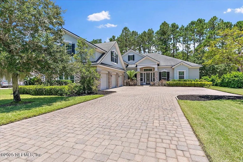 Welcome home to a beautifully maintained home nestled in a quiet, family-friendly neighborhood in highly sought-after Saint Johns, FL. Includes a one year home warranty. . As you drive up the charming courtyard park in the 3 car extended garage and enter into a grand foyer with soaring ceilings, extended doors, elegant double crown molding, abundant natural light and rich hardwood floors. 5th bedroom could be huge game/bonus room .Gourmet kitchen featuring a generous center island, double ovens, breakfast bar and back-splash. Large family room with Fireplace/Mantel leading to your private oasis facing the preserve for your privacy. Seller providing allowance for new flooring in master bedroom and stepdown on patio. Great area for walks and bike rides. Close to schools and shopping areas