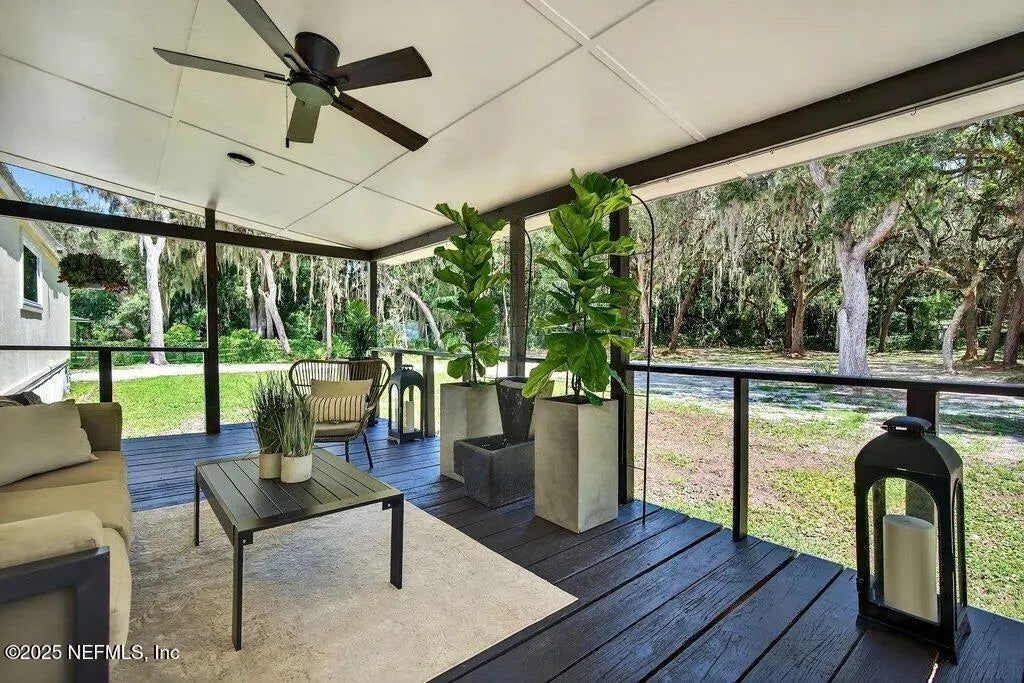Bring all your toys to this amazing property. No HOA, No CDD. 1.34 acres of ultimate privacy and beauty! Flood Zone X. Conventional, FHA, VA financing. Preferred lender to pay 1% of sales price toward closing costs and up to $650 toward appraisal. Relax on your sprawling back deck as you take in the splendor of nature! The upgrades and renovations are stunning. This spacious 3-bedroom, 2-bath home has been thoughtfully upgraded including freshly painted interiors, new lighting fixtures and luxury vinyl flooring throughout. The updated kitchen with island and granite counter tops features new appliances, modern picture window with remote window shade bringing the gorgeous views into your new home. Newly renovated bathrooms with a spacious primary bath featuring luxury bathtub all new tiles on floor and walk in shower, fixtures, vanity, and toilet. Plenty of room in your spacious walk in primary closet. Newly installed AC, reverse osmosis water system and water softener in 2024. Conveniently located 5 minutes to Palencia Community and Elementary School. 10 Minutes to Vilano Beach, downtown St. Augustine. Two entrances to Coopers Cove Road. Located near Stokes Landing, Talamato River.