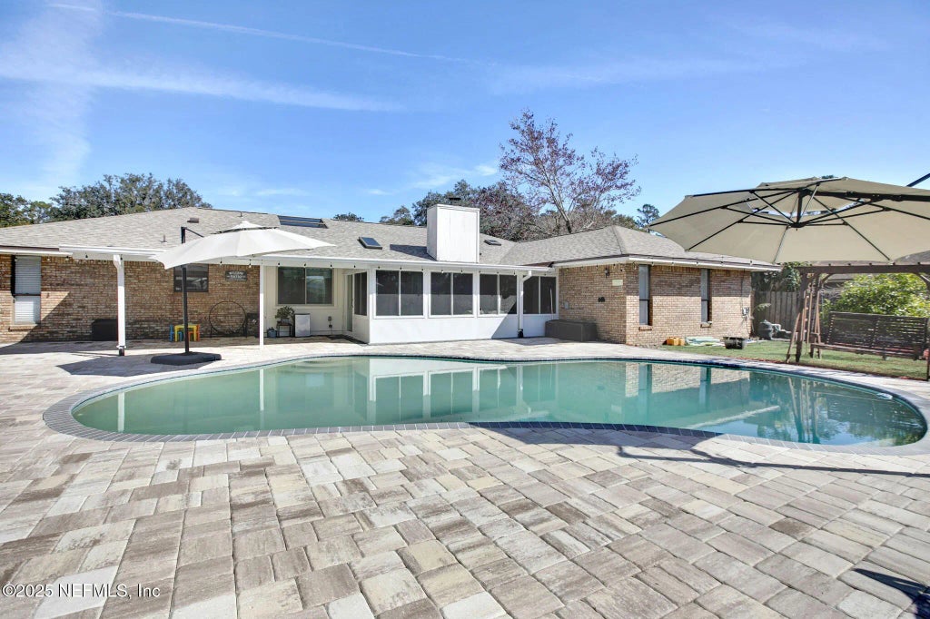 This stunning pool home offers the perfect blend of indoor comfort and outdoor relaxation and fun. Whether you're looking to relax in the sun, take a refreshing dip, or host a lively gathering, this oasis has it all. Home is located on large lot in the beautiful neighborhood of San Jose Forest near San Marco. Kitchen includes tile, custom maple cabinets, upgraded fixtures, SS appliances. Spacious Great room features vaulted ceiling with beams, tiled floor, skylights, fireplace & french doors that open to the large Florida Room. Primary suite has private sitting area with french doors to Florida Room/pool. New roof installed in 2022. TOTAL SQ FOOTAGE WITH SUNROOM IS 2620. Welcome home!!