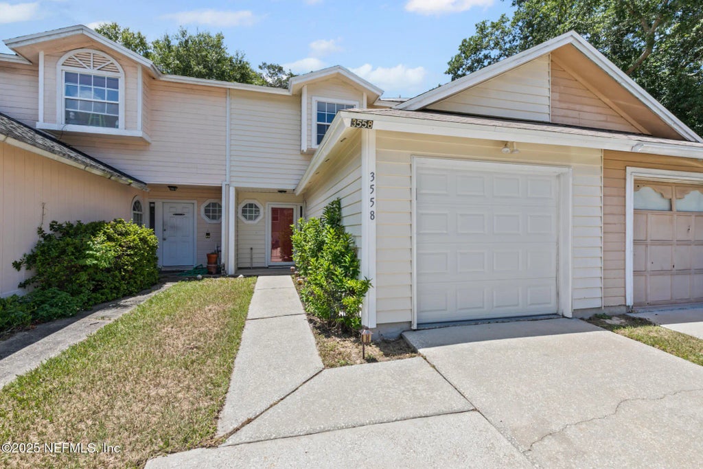 Nestled in Jacksonville's Caroline Forest community, this meticulously updated 2-bedroom, 2.5-bath townhome offers modern comfort and stylish living. This move-in-ready home offers 1,404 sq. ft. of bright, inviting living space, featuring fresh interior paint, new laminate wood flooring, and new lighting throughout. The stylish kitchen has been updated with new countertops, new cabinets, and stainless steel appliances. The open living area is highlighted by a cozy fireplace, creating a warm and welcoming atmosphere - perfect for relaxing evenings at home. Upstairs, the spacious primary suite includes a private en-suite full bath, while the second bedroom features its own full bath—both with new flooring and fresh paint for a crisp, clean feel. Practical features include a convenient 1 car garage, providing secure parking and additional storage space. Outside, the low-maintenance backyard boasts a retractable awning, creating the perfect shaded retreat for relaxing. Low HOA!! With an ultra-low HOA, this charming townhouse combines modern comfort with effortless living in a prime Jacksonville location. Don't miss this opportunity. Schedule your showing today!