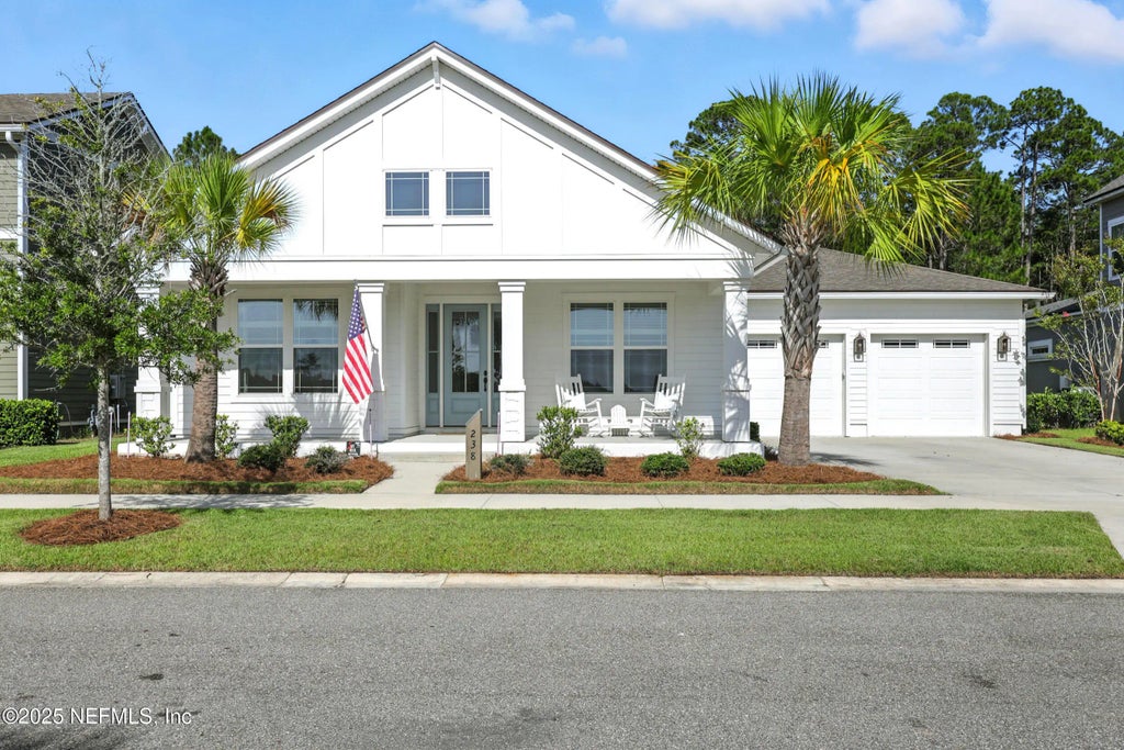Welcome to 238 Ponder Circle where your Wildlight dreams come true. Florida's Lowcountry at its finest living in this upgraded 4BR/3.5BA with water and conservation views. This beautiful home is loaded and seated on a gorgeous preserve with wide conservation land views. Watch the sunset over the water on the large southern style covered front porch, also visible right through the showstopper glass front door. This kitchen is a dream with soft-close cabinets and drawers, under-cabinet lights and outlets, reverse osmosis at the sink, external stove exhaust, roll-out shelves in all lower cabinets, upgraded hardware, and a Kohler farmhouse sink. Fixtures and lighting were chosen post-build for a more custom, designer finish. The garage is a true extention of this home with epoxy floor (Shark Coating), Proslat slatwal The HVAC includes a UV light at the coil plus a Reme Halo-LED in-duct purifier (zero ozone). Attic flooring adds serious storage space. Bathrooms feature full ceiling-height tile in every shower and a frameless glass enclosure in the primary suite. The family room is wired for clean installs with a 3-panel slider and high-mounted TV outlet. Neighborhood perks: Water Bug Park with a massive pool, another new pool will be completed the fall of this year, pickleball courts, dog park, multiple playgrounds, and miles of walking/biking trails, and can't miss Cold Stone Creamy for those bike ride with family.