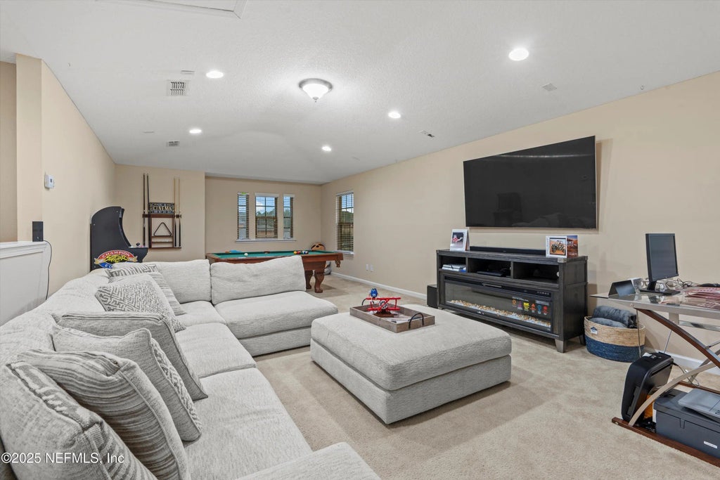 BACK on MARKET! (No fault of seller or property). NO CDD and low HOA attracts any buyer to Samara Lakes built by STANDARD PACIFIC. ALL BEDROOMS are DOWNSTAIRS. LENDER is OFFERING a FREE Appraisal if buyer uses the preferred lender, Need a 4th bedroom? No problem. Take the staircase up to a spacious 31 x 18 BONUS room that can be easily used as a large 4th BEDROOM, a gym, playroom, home theatre, home office. Enjoy a NEW CUSTOM Electric Fireplace. With a split floorplan, the primary bedroom features an ensuite with a soaking tub and separate shower. Then, step outside to your backyard oasis overlooking a POND. As an additional perk for those with ELECTRIC vehicles, garage is PRE-WIRED ready for charging. Situated in the highly sought-after community for its A-rated schools (Pacetti Middle School has an outstanding gifted program) and shopping closeby, make this a top-notch area to call home in the World Golf Village area of NW St Johns county!