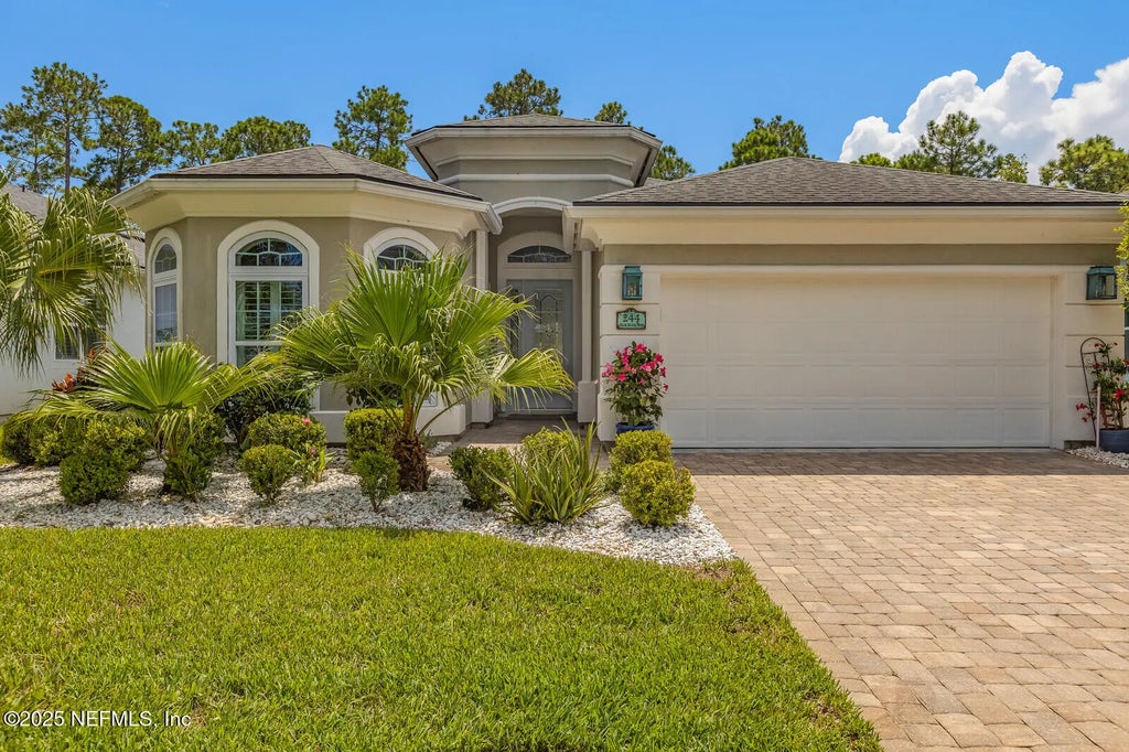 SELLER OFFERING $7,000 Towards BUYERS Closing Costs!! Welcome to an exceptional 3-bedroom, 2.5-bath home in the exclusive, 24-hour guard-gated community of Coastal Oaks. Situated on a private preserve lot, the 2,230 sq ft residence offers a tranquil setting with scenic nature views. Boasting a grand, open-concept layout, this single-level home features soaring 12-foot ceilings and diagonally laid tile floors, offering easy living with no stairs to navigate. The gourmet kitchen is a chef's delight, with a large center island, solid granite countertops, soft-close cabinets, and a suite of stainless steel KitchenAid appliances. The large, free-flowing living room, anchored by a cozy gas fireplace, is perfect for gathering and entertaining. A separate dining room provides an ideal space for intimate dinner parties. Seamless indoor-outdoor living is a key feature of this home, with a triple sliding glass door that opens to an expansive, oversized screened-in paver lanai. The lanai is a true extension of the living space, perfect for entertaining or simply relaxing while enjoying the serene preserve views. The beautifully landscaped backyard with lush, premium grass is fully fenced with gates for added privacy and security. Step into the spacious primary suite, a luxurious retreat that features a bay window with sweeping views and a trey ceiling. It comes with two walk-in closets with custom organizers and a spa-like bathroom that has two vanities with granite countertops and an oversized, three-head shower. The two additional bedrooms are nicely sized and share a well-appointed full bathroom. A convenient half bath is perfect for guests. Coastal Oaks provides residents-only amenities, including two pools, a gym, a clubhouse, a baseball field, tennis courts, sand volleyball, and a playground. This prime location offers quick access to Nocatee trails, Splash & Spray water parks, top-rated schools, and a variety of restaurants and stores. The beach is just a short drive away. Don't miss the chance to live the Nocatee lifestyle in this beautiful home. Schedule your private tour today!