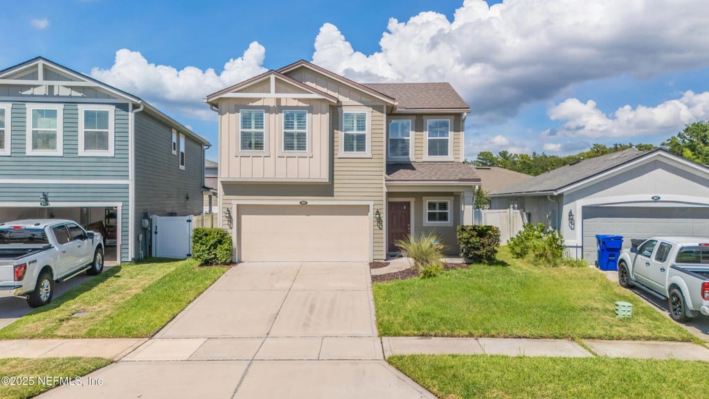 Nestled in the heart of Rivertown, a master-planned community along the St. Johns River, this beautiful two story home offers the perfect blend of tranquility and luxury with 5 bedrooms, 3 bathrooms, a loft and 2-car garage. Elegance meets VALUE with an open kitchen complete with island, stainless appliances and quartz countertops. The front yard overlooks stunning lake views and the fenced-in private backyard is perfect for outdoor entertaining or your personal oasis. The master suite is a serene retreat, featuring a seamless shower and huge walk-in closet. Located in the desirable Rivertown community, residents enjoy access to three amenity centers that boasts an infinity edge pool, waterfront dining, kayak launch, amphitheater, playgrounds, zip line, dog parks, game room, boardwalk and pier along the river, miles of trails, tennis, pickleball, basketball, 2 gyms and breathtaking sunsets. RiverTown has something for everyone and this home is a must see offering the BEST VALUE!