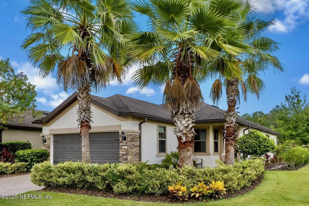 Welcome to this exquisite three bedroom, two bathroom home in Del Webb Ponte Vedra, a premier 55+ active adult community. Nestled on a spacious corner lot with mature landscaping, this residence offers both elegance and tranquility. Inside, porcelain tile flooring flows through the main living areas, complemented by antimicrobial carpeting in two bedrooms for added comfort. A custom 16' x 16' air-conditioned, all-weather lanai with textured concrete flooring and vinyl windows (not included in square footage) extends your living space, perfect for year-round relaxation or entertaining. The gourmet kitchen is a chef's dream. The current owners have replaced all appliances, including a five-burner gas stove and a high-end Thermador dishwasher, french door refrigerator, over stove microwave and garbage disposal. The kitchen also boasts quartz countertops, 42'' cabinets, and under as well as above-cabinet lighting. Additional recent modern upgrades elevate the home's functionality and efficiency, including a Generac whole-house generator with a 500-gallon in-ground propane tank, a tankless gas water heater, an Aquasana whole-house water filtration system (no salt required), a Rainbird irrigation system with remote access, Moen faucets in both bathroom and the kitchen, and Toto toilets in both of the bathrooms. Laundry includes an LG top loader washer and dryer. Just a short walk to the Anastasia Club and Central Park, enjoy pools, sauna, tennis, pickleball, bocce, and endless clubs.