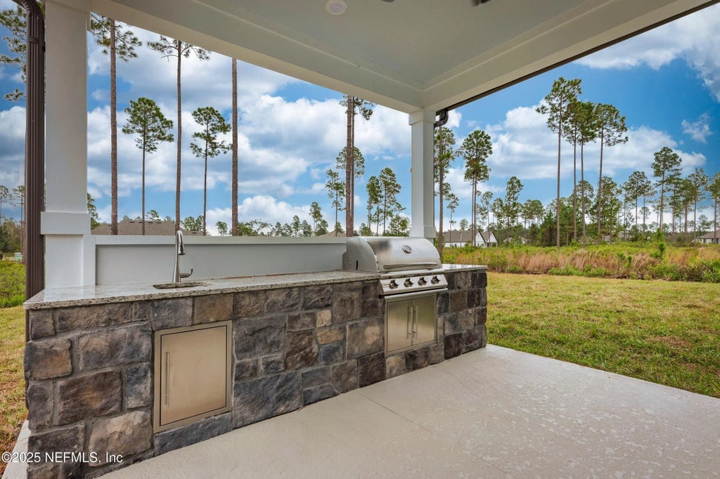 This exquisite two-story home boasts 4 spacious bedrooms and 3.5 well-appointed bathrooms. Designed with both functionality and elegance in mind, the main floor includes a formal living room, an open-concept kitchen with a breakfast nook, and a convenient laundry room. Homeowners will appreciate the spacious master bedroom, large enough to accommodate your entire bedroom suite, as well as the beautifully designed bathroom. The living room offers a great space for gathering with friends and family. Large windows along the back of the home offer views of the covered outdoor living area. The inviting wraparound front porch is perfect for relaxing after a long day, complemented by a fully equipped outdoor kitchen. Upstairs, a versatile loft area offers additional living space, perfect for a home office or entertainment area. This home seamlessly combines modern amenities with timeless design, creating an ideal setting for both relaxation and entertainment.