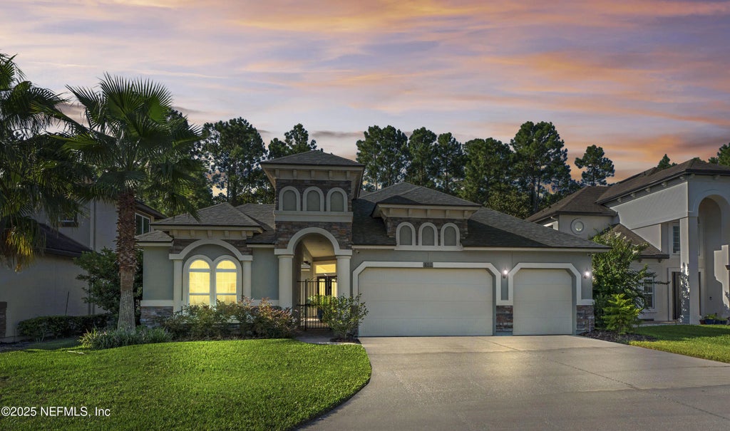 *Brand new roof (March 2025) and HVAC system (Sept 2025)* This stunning Platinum Series Palms II home in the coveted Durbin Crossing community features 5 bedrooms, 4 bathrooms, and a versatile detached suite connected to the main house by a gated courtyard. This exceptional residence offers 3,072 sq ft of thoughtfully designed living space within a total of 4,584 sq ft, blending luxurious finishes with functional family living. From the moment you arrive, the paver driveway, capable of accommodating up to six vehicles, and a beautiful paver courtyard set the stage for elegance and charm.