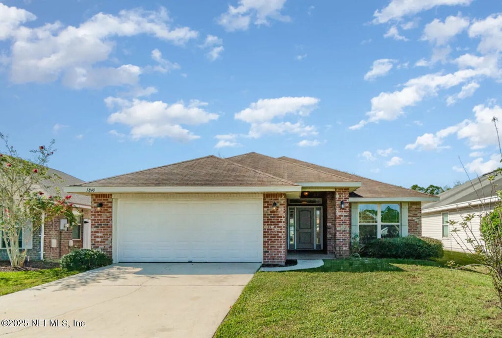 Welcome home to this beautifully designed 4-bedroom, 2-bath brick residence located in the serene Pickett's Cove community. Built with comfort and style. The open-concept kitchen boasts generous cabinetry, abundant corian counter space, breakfast bar, and walk-in pantry, flowing seamlessly into the dining and spacious family room with vaulted ceilings. The split-bedroom layout offers privacy, the primary suite showcasing a large walk-in closet and a luxurious bath. Three additional bedrooms share a full bath, providing ample space for family or guests. Enjoy indoor laundry, ceiling fans, and a finished 2-car garage with attic access. Relax on the covered patio—ideal for entertaining or unwinding at day's end. Residents enjoy a quiet neighborhood with a community playground, low HOA fees and no CDD. Conveniently located just minutes from I-295, Jacksonville International Airport, shopping, and dining. This move-in ready home blends functionality and charm—schedule your showing today!