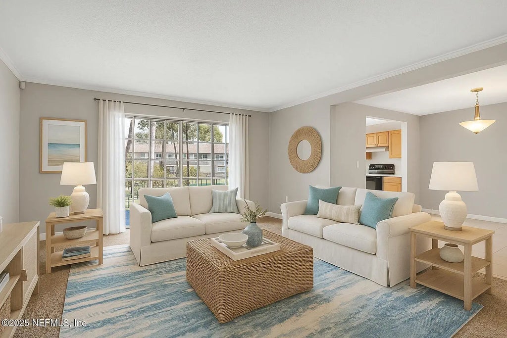 Feel the coziness as you step into this 2 BEDROOM/2 BATH, 1,130 square foot condo. Located on the 2ND FLOOR, SUNSHINE streams through the SCREENED IN BALCONY overlooking a beautiful courtyard, perfect for your MORNING COFFEE to start the day. The OPEN FLOOR PLAN and freshly painted spaces give a modern feel. Details like CROWN MOLDING and raised panel maple cabinetry in the kitchen add style. The primary suite has a WALK-IN CLOSET and PRIVATE bath. In unit WASHER/DRYER included. Conveniently located in a QUIET section of the complex, steps to the large POOL and the RIVERFRONT. Colonial Point has a dock with BOAT SLIPS, available on a first come, first served basis, canoe/kayak storage plus monthly FOOD TRUCKS, weekly bingo and seasonal events. Located in the heart of Jax, minutes to SAN MARCO, downtown, the stadium and convenient to first class medical care, the airport and the BEACHES. Monthly dues cover water, sewer, trash, landscaping and pest control.