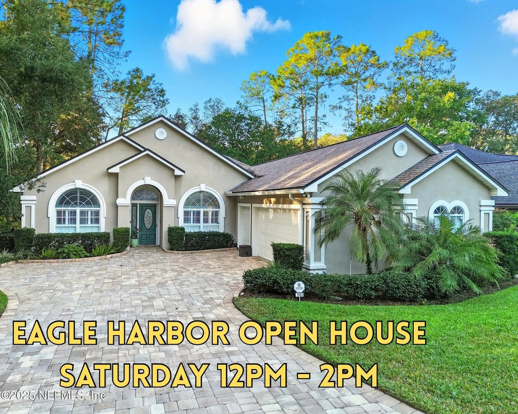 Located in the prestigious Community of Eagle Harbor in Fleming Island, this custom home sits on the award-winning Eagle Harbor golf course with serene views of the 17th hole & unmatched privacy. Offering two spacious owners' suites, a third bedroom and bath, and a stunning solarium surrounded by conservation, this home blends luxury with tranquility. The open concept kitchen features solid wood cabinetry, granite counters, and gourmet appliances. Additional highlights include two large climate-controlled storage rooms or workshops, a 3-bay courtyard-entry garage perfect for two cars and a golf cart, and recent upgrades including a newer roof, HVAC, water heater, gutter guards, and pavered drive. Enjoy access to Eagle Harbor's award-winning amenities—pools, boating, tennis, pickleball, trails—and top-rated Clay County schools, all with low HOA/CDD fees.