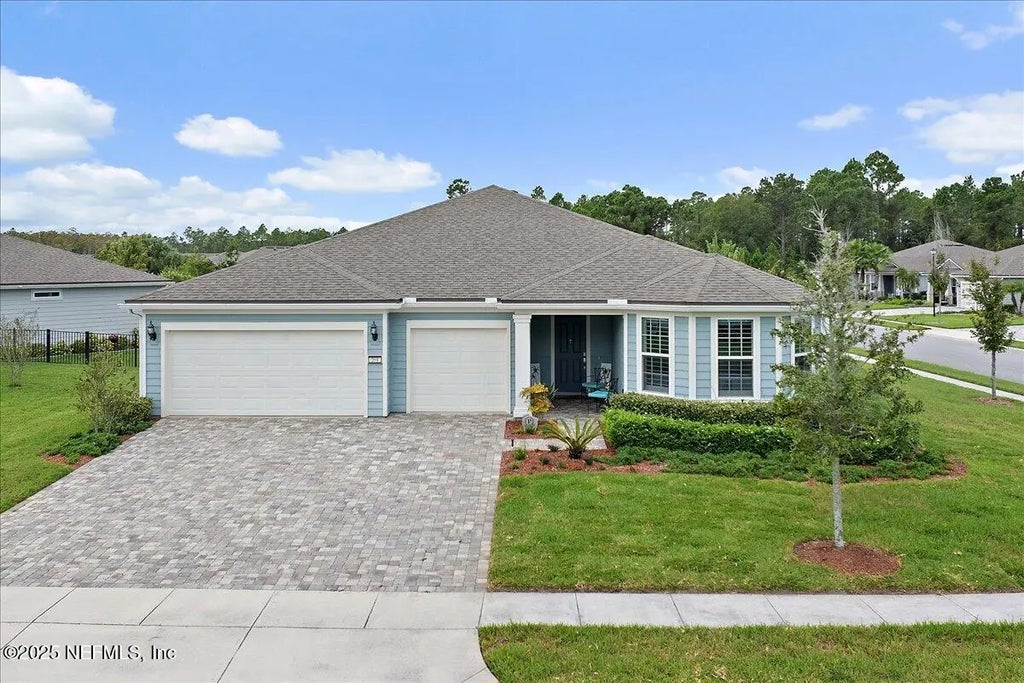 Welcome to the highly sought after Renown model. This spacious single-story home features 3 bedrooms, 3.5 bathrooms, a flex room (possible 4th bedroom) & an oversized 3-car garage. The gourmet kitchen with stainless steel appliances, a large center island & abundant cabinets, seamlessly connected to the spacious great room & inviting dining area, perfect for hosting. Sliding glass doors open to an expansive screened and covered lanai, perfect for unwinding. The luxurious owner's suite includes a spa-inspired bathroom, walk-in shower, dual vanities, and two large walk-in closets. Each guest bedroom features its own private full bathroom, offering exceptional comfort and privacy. The flex room can serve as an office or 4th bedroom. Premium features and upgrades include solar panels, typical electric bill under $50 per month, water softener, an electric vehicle charging station & whole house surge protector. This gorgeous move-in ready home offers space, style & unmatched value. see mor Del Webb Nocatee, the newest 55+ community where luxury living meets unparalleled amenities including: resort pools, spa tub, pickle ball (over 300 members), tennis, bocce, billiards, a full service restaurant and bar, ballroom, fitness center, community garden, kayak launch to the intracoastal etc. If that is not enough, you can enjoy all that the community of Nocatee has to offer just a few miles away on golf cart paths, including waterparks, concerts, food trucks, restaurants and shopping.