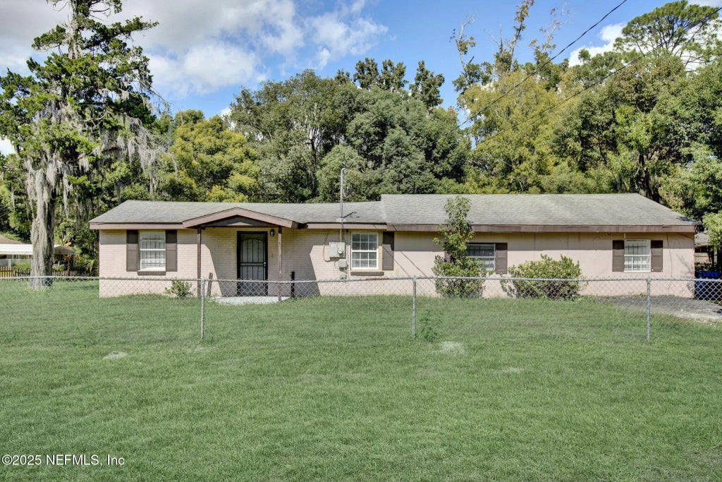 Nicely updated RANCH home in QUIET neighborhood. 3 bedroom, 2 bath with VAULTED ceilings on a LARGE corner lot. UPDATED flooring, paint, kitchen and baths with 1 tub and 1 walk in shower. Kitchen is OVERSIZED, perfect for family dinners and adding an island. Spacious family room perfect for hosting football parties. Washer dryer hookups. HVAC 2022, newer water heater. Septic pumped 7/2025. Great starter home, or downsizing empty nesters. Investor OPPORTUNITY good rental potential. Neighborhood convenient to downtown, airport, and major highways. 10 minutes to Publix, 15 minutes to River City Marketplace.