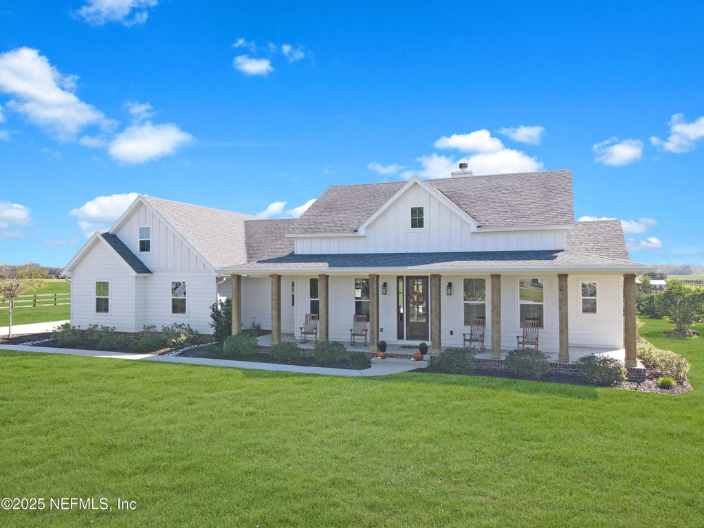 Welcome to your dream equestrian retreat in Elkton, Florida: A stunning 4-bedroom, 3-bath home set on 6.1 picturesque acres overlooking a peaceful 30-acre pond. Offering the perfect blend of country serenity and modern comfort, this property was designed for those who love open space, horses, and the outdoors. The open-concept floor plan spans 2,676 square feet and is ideal for entertaining or relaxed family living. The chef's kitchen is the heart of the home, featuring an oversized island, granite surfaces, a spacious walk-in pantry, and a beautiful brick framing feature that adds warmth and rustic charm to the space. The kitchen flows seamlessly into a bright living area anchored by a cozy wood-burning fireplace. The primary suite includes a freestanding soaking tub, a large walk-in closet, and peaceful views of the surrounding land. Expansive front and back porches capture breathtaking sunrises and sunsets across the pond and pasture. Through the private gated entrance, you'll find fully fenced acreage ready for your horses or other livestock, with plenty of space to add a custom barn or accessory building. Enjoy fishing, kayaking, or trolling a john boat on the pond. A brand-new 18×32 saltwater pool with hot tub, sunshelf, heater, and chiller sits atop elegant sand-blasted marble decking that's non-slip and cool underfoot, creating a true backyard oasis. The oversized two-car garage and whole-home water softener add comfort and convenience. Located just minutes from I-95 and St. Augustine's shops and restaurants, yet tucked away in the quiet countryside of Elkton, this home offers the best of both worlds. Families will also appreciate proximity to excellent A-rated St. John's county schools and nearby private school options such as St. Joseph Academy, Cathedral Parish School, and Turning Point Christian Academy. Whether you're an equestrian enthusiast, a hobby farmer, or simply seeking peaceful waterfront living, this exceptional Elkton property delivers the lifestyle, space, and freedom you've been dreaming of.